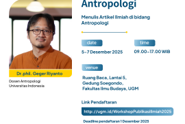 The Department of Anthropology, Faculty of Cultural Sciences UGM, will hold a publication workshop focusing on the writing and publication of scholarly articles in the field of anthropology.