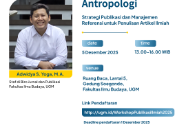 The Department of Anthropology, Faculty of Cultural Sciences, Universitas Gadjah Mada, will hold a publication workshop focusing on publication strategies and reference management for writing scholarly articles.