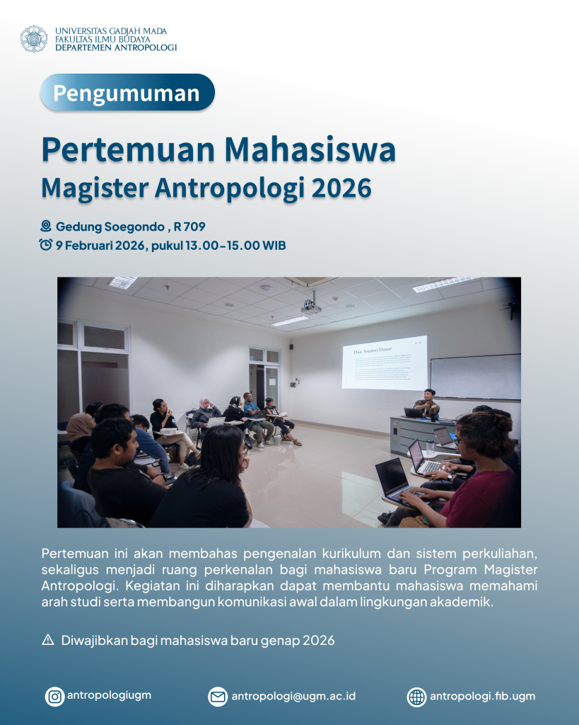 The Department of Anthropology invites all students of the Master’s Program in Anthropology to attend the Master’s Program in Anthropology Student Meeting 2026. This meeting will provide an introduction to the curriculum and academic system, as well as serve as an opportunity for new students of the Master’s Program in Anthropology to get acquainted.