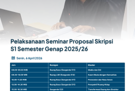 Diberitahukan kepada mahasiswa S1 Antropologi Budaya yang telah mengirimkan berkas dan proposal untuk mengikuti seminar proposal semester genap tahun ajaran 2025/2026. Adapun informasi terkait waktu, tempat pelaksanaan sempro adalah sebagai berikut: