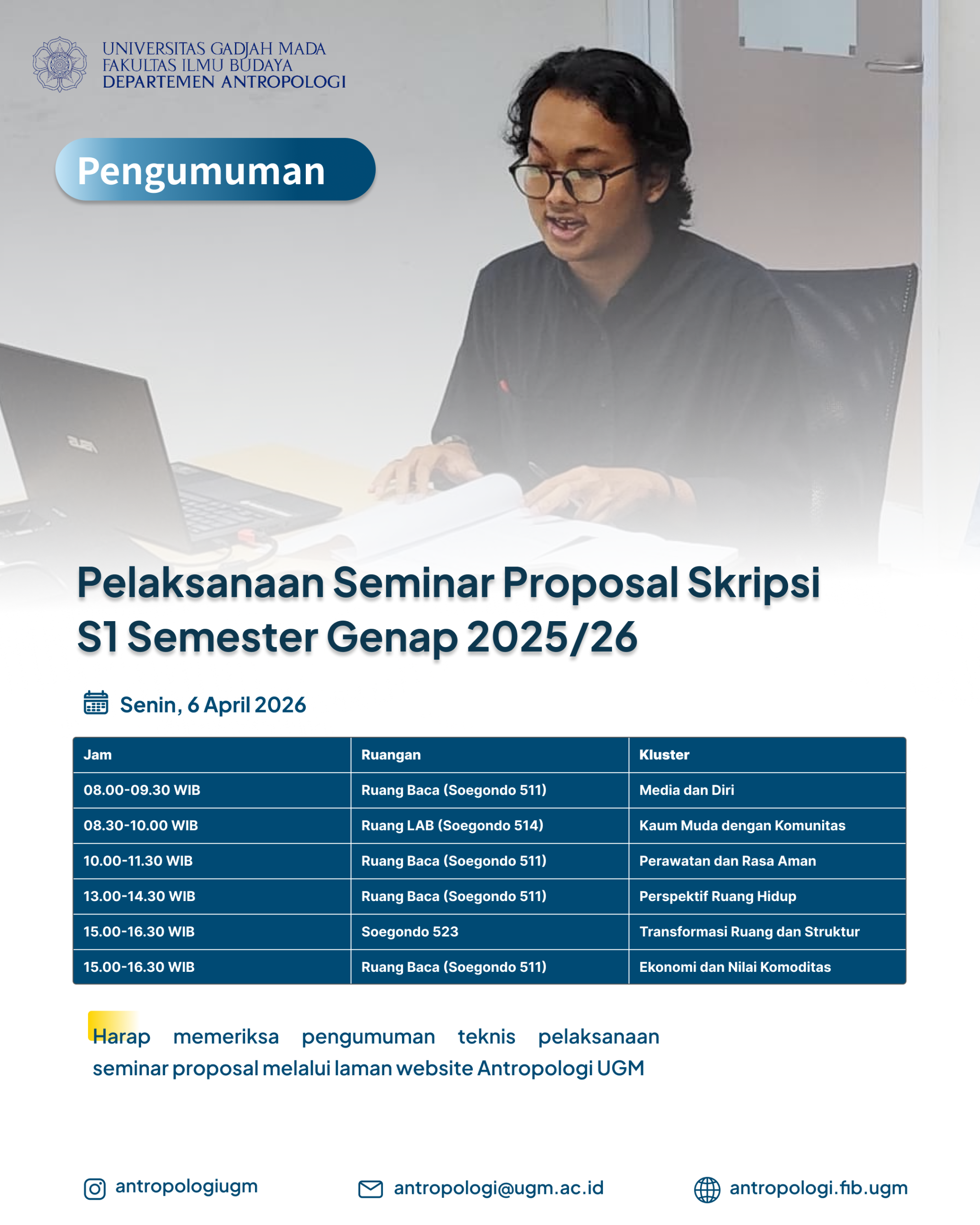 Menindaklanjuti hasil pelaksanaan Seminar Proposal Tesis S2 Antropologi pada Rabu, 16 Oktober 2024, berikut kami lampirkan hasil pembagian daftar mahasiswa pembimbingan tesis