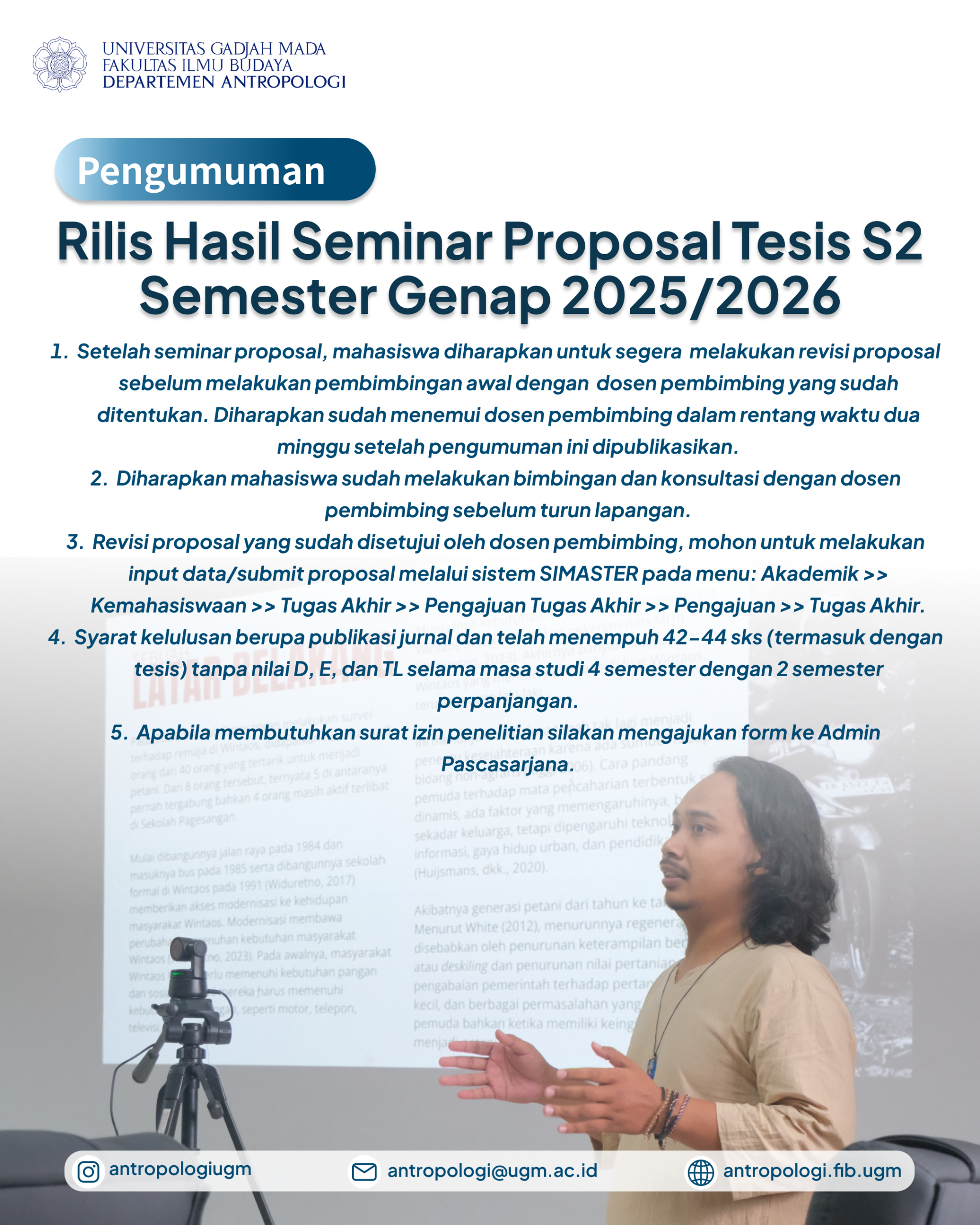 Diberitahukan kepada seluruh sivitas akademik Departemen Antropologi UGM, berikut kami sampaikan informasi terkait kalender akademik T.A. 2023/2024 yang mulai berlaku pada semester depan.