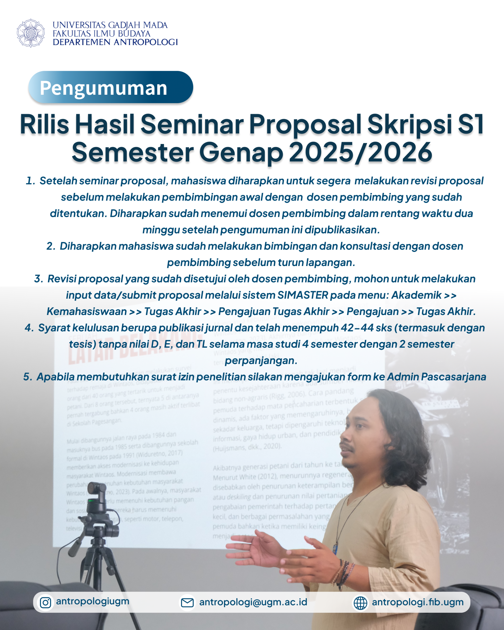- Setelah mengisi form pendaftaran mohon untuk menunggu konfirmasi selanjutnya dari pihak Departemen Antropologi melalui email.