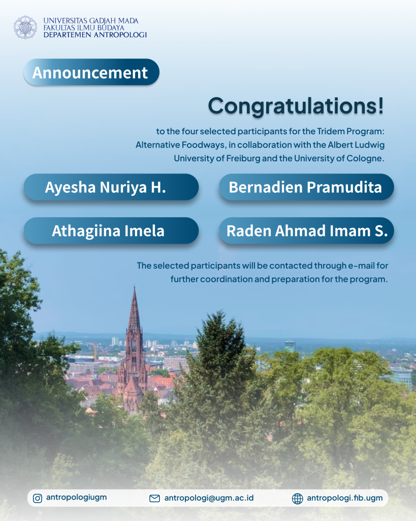 Keempat mahasiswa akan segera dihubungi oleh Kesekretariatan Departemen Antropologi terkait informasi lebih lanjut.