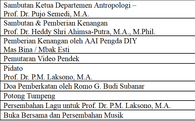 Susunan Acara Pidato Valediktori Prof. Dr. P.M. Laksono, M.A.